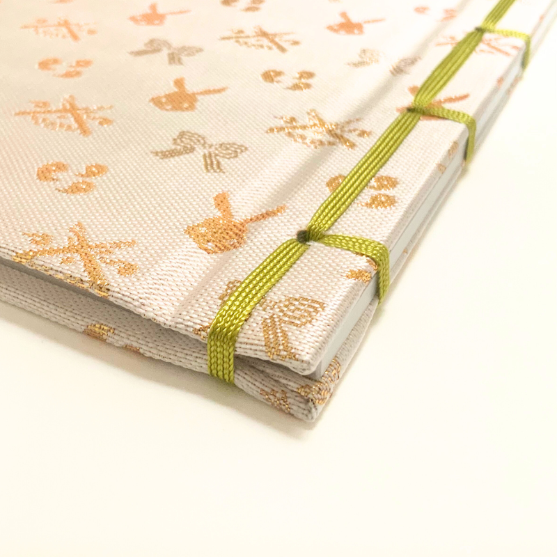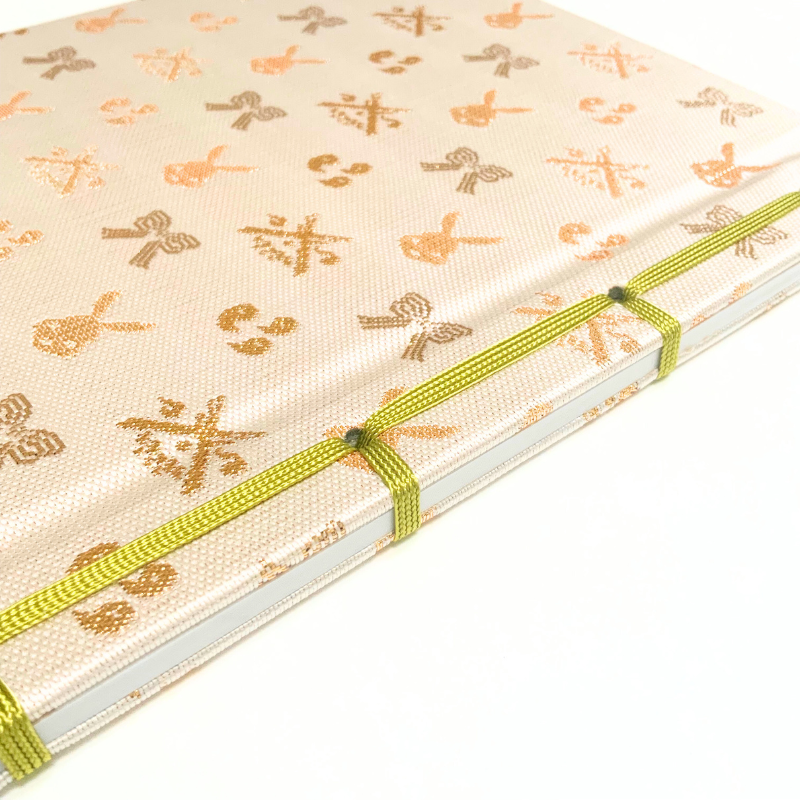 伝統的な織物。一般的には、雛人形の衣装や掛け軸、仏具用品などに使用されています。金襴生地で仕立てた御朱印帳は、ひと味違う華やかな御朱印帳。社寺の荘厳な雰囲気にもぴったりです。