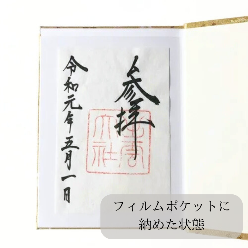 当商品は書置き御朱印を保存することができるポケット式。近年、書置きの御朱印を授与される神社仏閣も多くなり、ポケット式のものはとても重宝します。30体の御朱印を納めることが可能で、大判サイズの御朱印も余裕をもって収納可能。御朱印帳を雨や汚れから守ってくれる専用ビニール付きですので、届いたその日から御朱印巡りにお出かけいただけます。