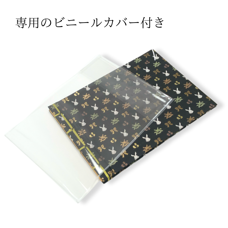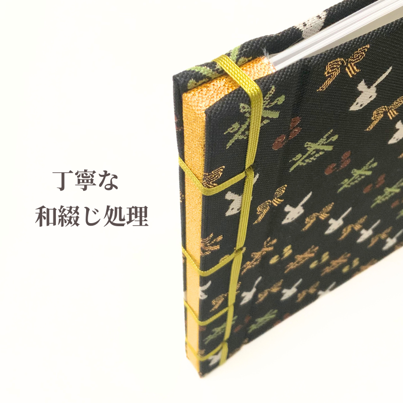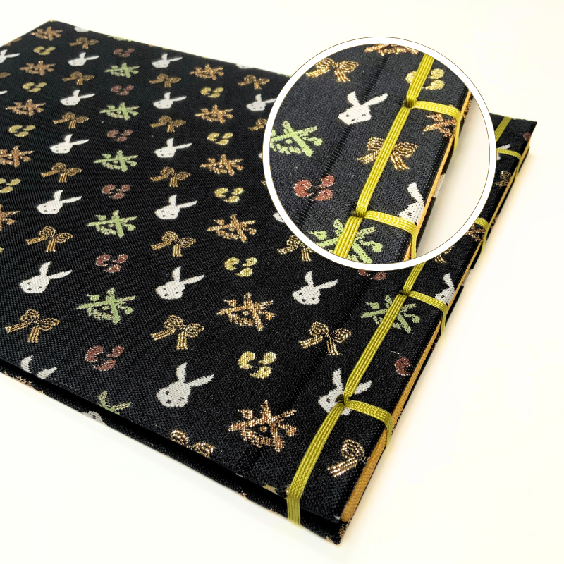 見開き御朱印帳(ポケット式/和綴じ) ご縁うさぎ 金襴 (黒) -書き置き朱印用- | 出雲大社 神社仏閣 ご朱印帳 専門店 オリジナル 通販 オンラインショップ 公式