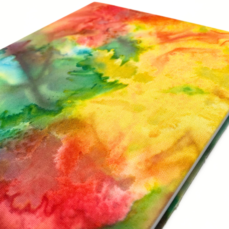 鮮やかな色彩とグラデーションが魅力の、タイダイ染め表紙の御朱印帳です。幾重にも重なる色のにじみが、まるで水彩画のように広がるタイダイ染め。それぞれが深みを帯びながらも柔らかく溶け合い、一期一会の模様を描き出します。偶然の美しさが、一冊ごとに異なる表情を見せてくれる、あなただけの御朱印帳。