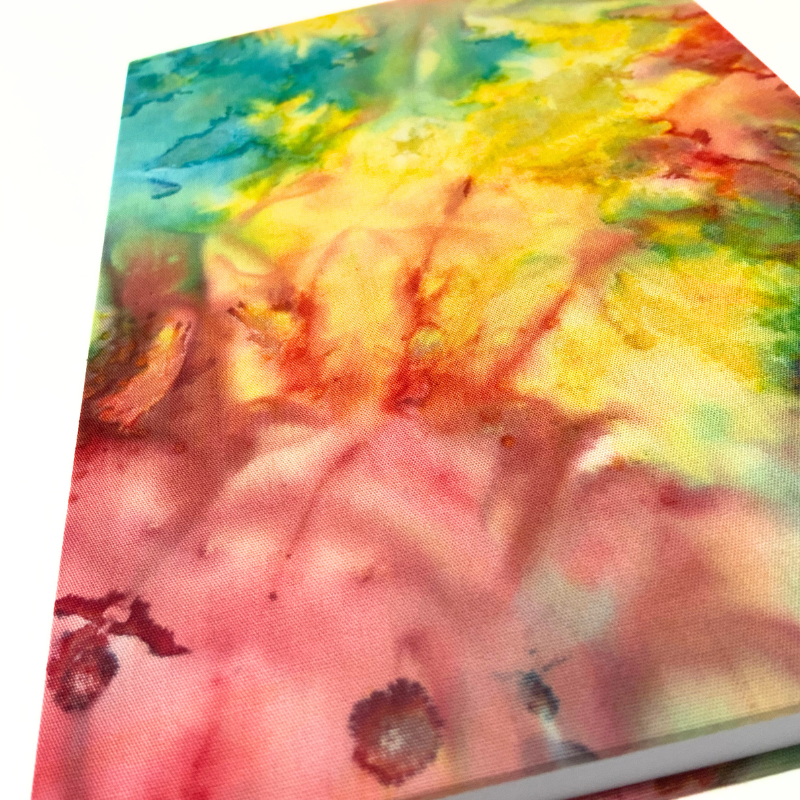 This Goshuincho (temple and shrine stamp book) features a vibrant tie-dye cover with captivating colors and gradients.