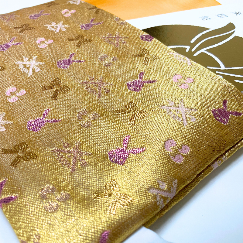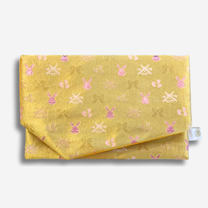 しるべ特製の「ご縁うさぎ金襴」生地でお仕立てした 御朱印帳入れ/ふくさです。