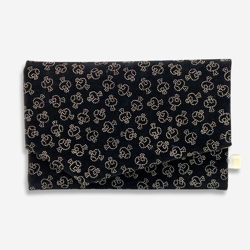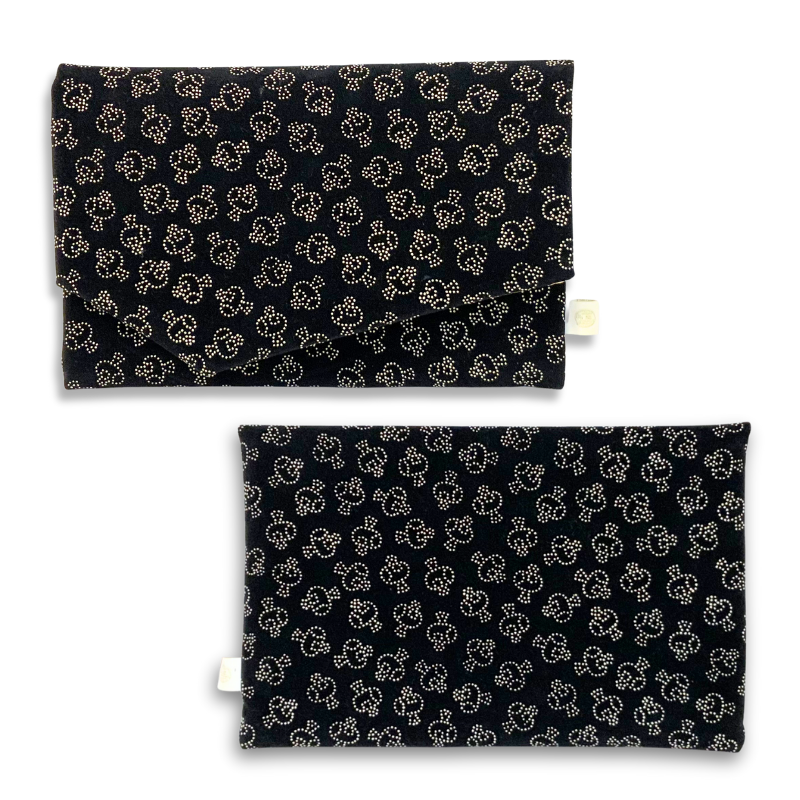 伝統的な美しさを感じさせる印伝風生地で仕立てた、袱紗兼御朱印帳入れです。